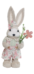 COELHA C/FLOR BEGE/VERDE/ROSA 34CM 1UN