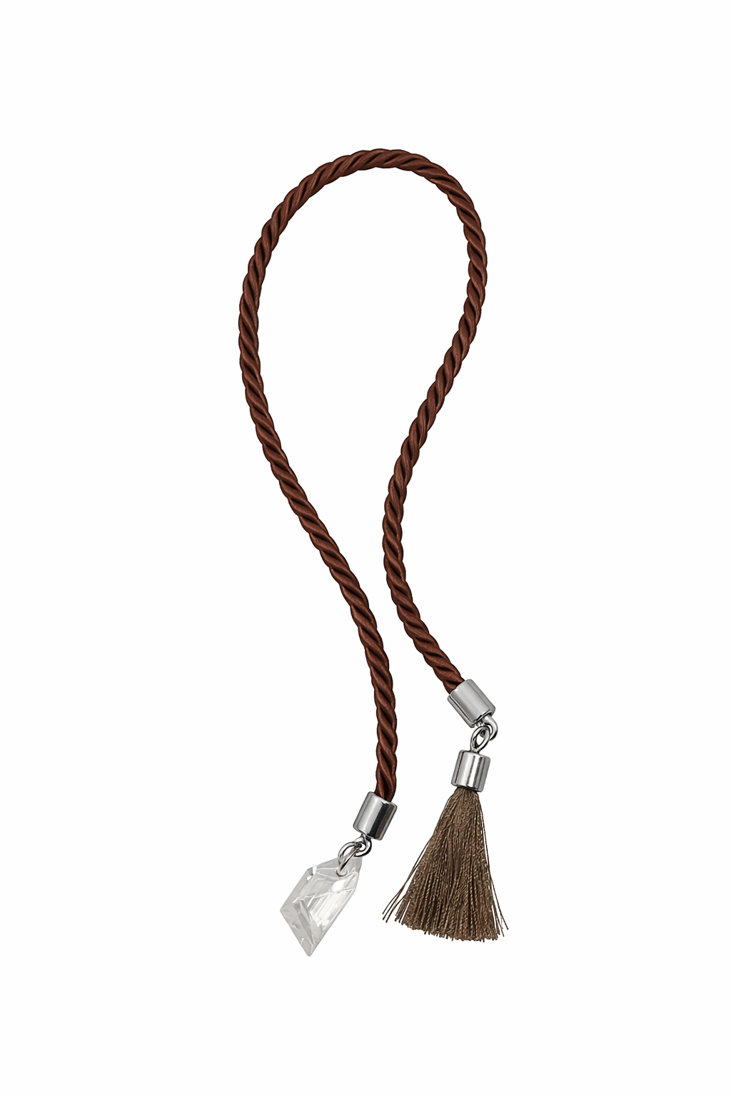 CORDÃO POMPOM MARROM C/PRATA 42CM 1UN