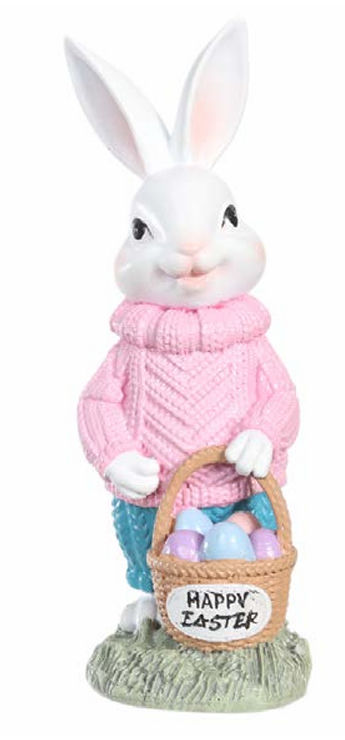 RESINA DECORATIVA COELHA TRICOT PROVENCAL ROSA 15.5X5cm 1UN